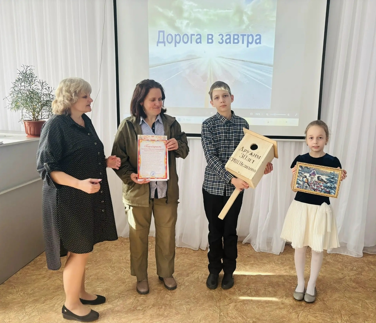Ребята убедились, что для работы в заповеднике мало одного интереса к природе: чтобы знать хорошо профессию, нужно учиться. Будем надеяться, что это не станет для воспитанников ГБУ СРЦН «Мой семейный центр» большим препятствием)). После мероприятия директор Надежда Васильевна Чижикова и педагог Наталья Николаевна Туманцева вместе с ребятами пригласили гостью за чайный стол. За чаепитием выяснилось, что Центр и Центрально-Лесной заповедник дружат ровно 30 лет! Не перечислить, сколько эколого-просветительских мероприятий было проведено за это время... Ребята подарили заповеднику на прощание скворечник с надписью «Дружим 30 лет» и картину с птицами, сделанные своими руками, а Елена пригласила всех на заповедные экскурсии. Ждём новых встреч с воспитанниками и педагогами Центра!