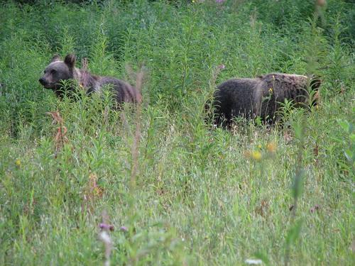 Последние кормежки медведей перед зимним сном. Пара медведей - самка с медвежонком, были случайно встречены на верховом болоте Старосельский мох 15-го ноября. Учитывая, что медведи среагировали только на щелчки фотоаппарата, клюква их заботила гораздо больше, чем присутствие человека.