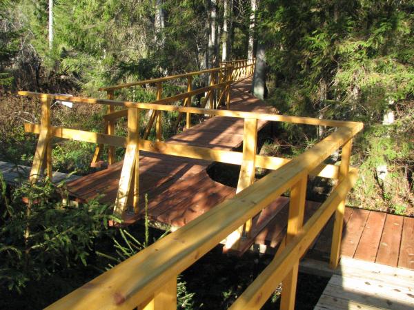На экотропе «Старосельский Мох» обновлена туристическая «Стоянка кривичей». Кривичи, конечно, на ней никогда не жили. Стоянка устроена для отдыха туристов, идущих по маршруту через огромное Старосельское болото (длина маршрута – от 6 до 17,5 километров).