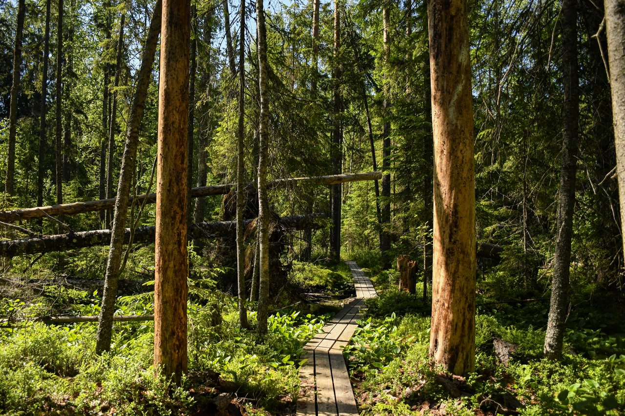 Тропа проложена по живописному верховому болоту. Верховые болота – непривычный, почти иноземный пейзаж для жителей центральной России: огромные открытые пространства полностью покрытые мхом и необычными растениями, птицы, не встречающиеся ни в каких других экосистемах, россыпи вкуснейших болотных ягод и особый кружащий голову аромат. На середине пути предусмотрена стоянка для отдыха, с туалетом. Также есть две вышки, откуда можно полюбоваться на болото сверху. Посетить можно самостоятельно или с экскурсоводом.