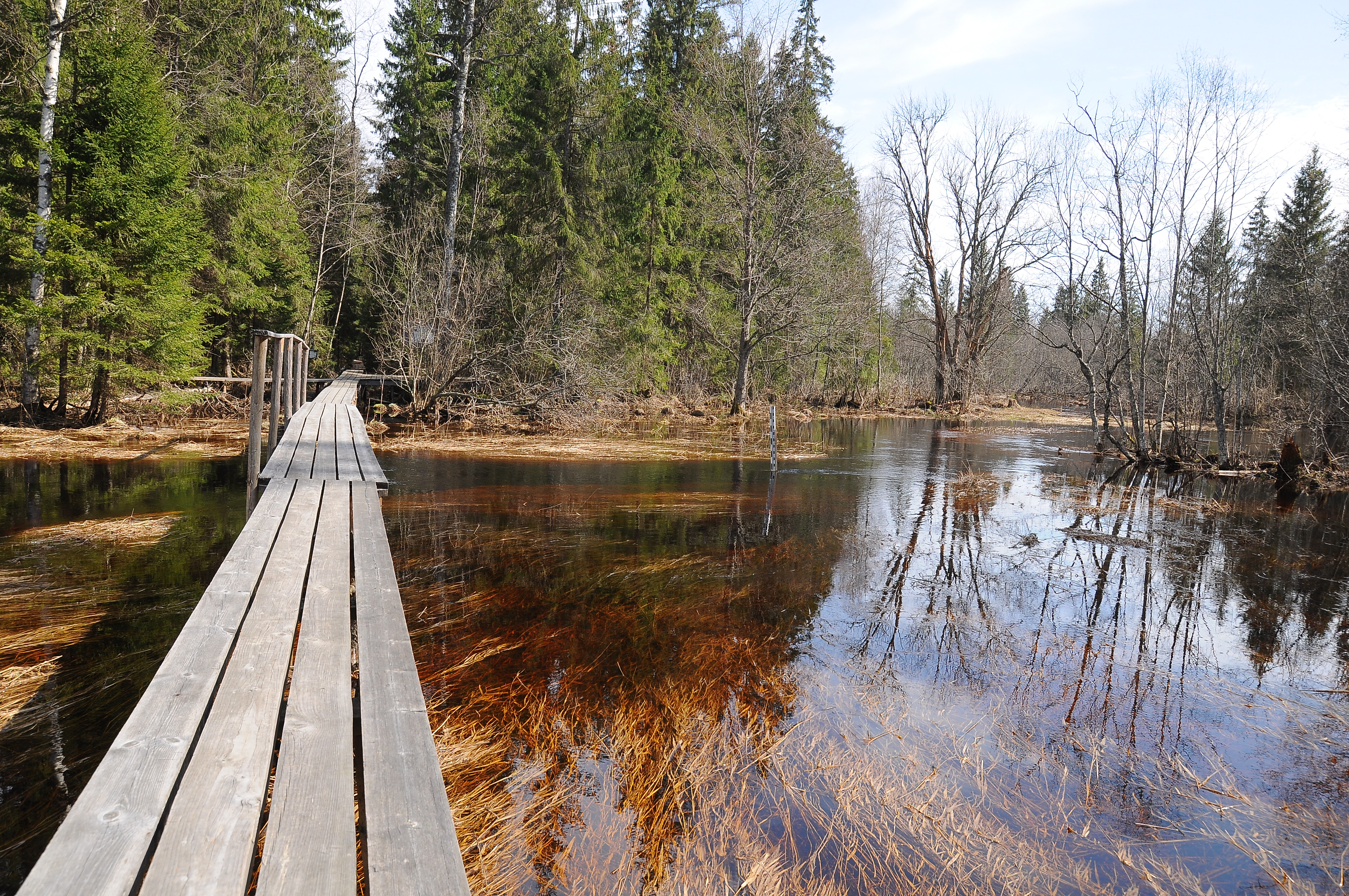 Почвенно-грунтовые воды на территории заповедника подходят близко к поверхности и даже в сухие годы не опускаются глубже 3.0-3.5 м. Однако уровень их сильно колеблется в зависимости от метеорологических условий и характера рельефа. И вот эти колебания уровня вкупе с обильным таянием снега создают неповторимые пейзажи весны в Центрально-Лесном заповеднике.