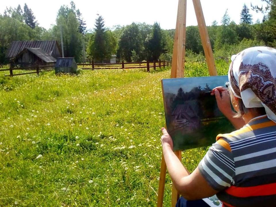 В День открытых дверей к нам присоединилась группа художников из районного центра - г. Нелидово, во главе с директором Музейно-выставочного центра. Они подарили гостям праздника возможность познакомиться со своими душевными работами, а также с воодушевлением рисовали на пленэре. И несколько работ уже готовы! Утверждают, что воздух заповедный и покой дарят вдохновение, что рисовать у нас легко и очень радовались празднику и большому количеству зрителей.