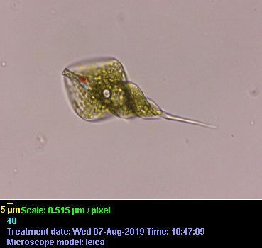 Phacus longicauda. Фото предоставлено кафедрой микологии и альгологии Биологического факультета МГУ