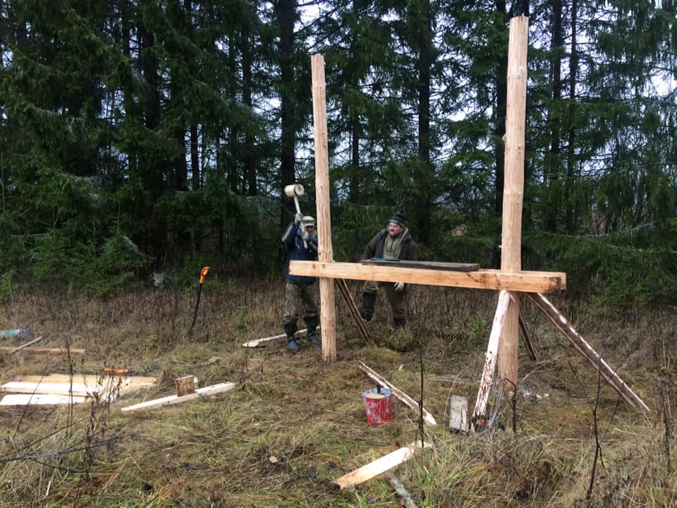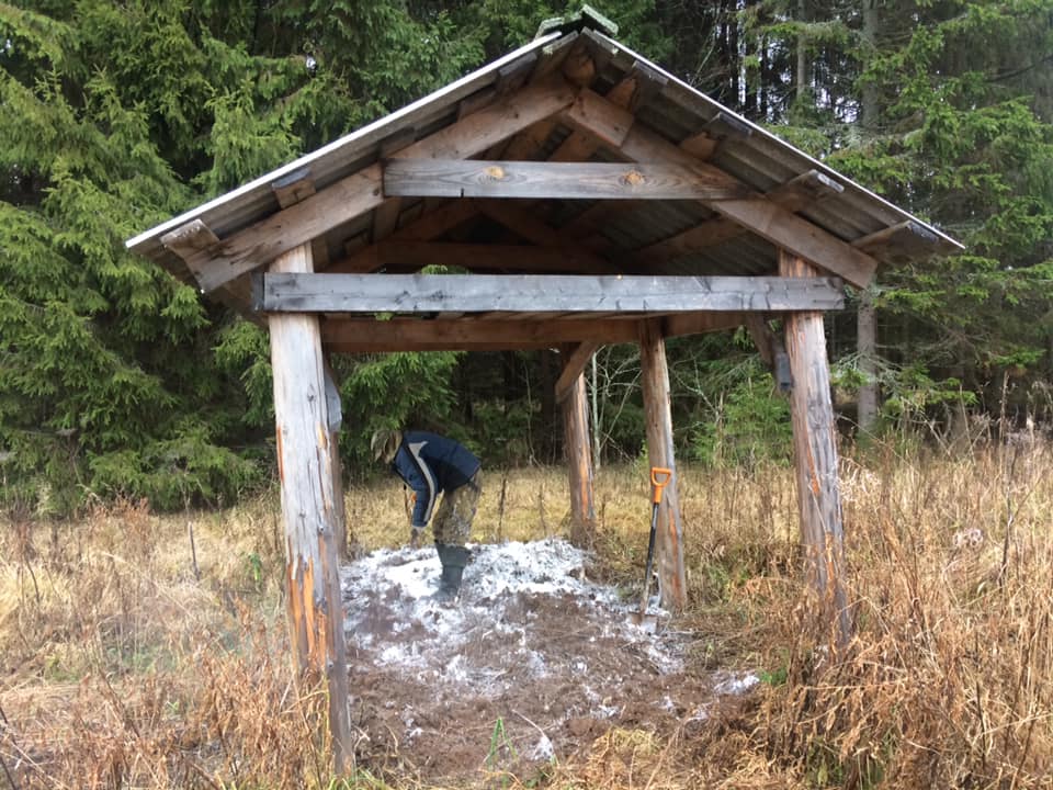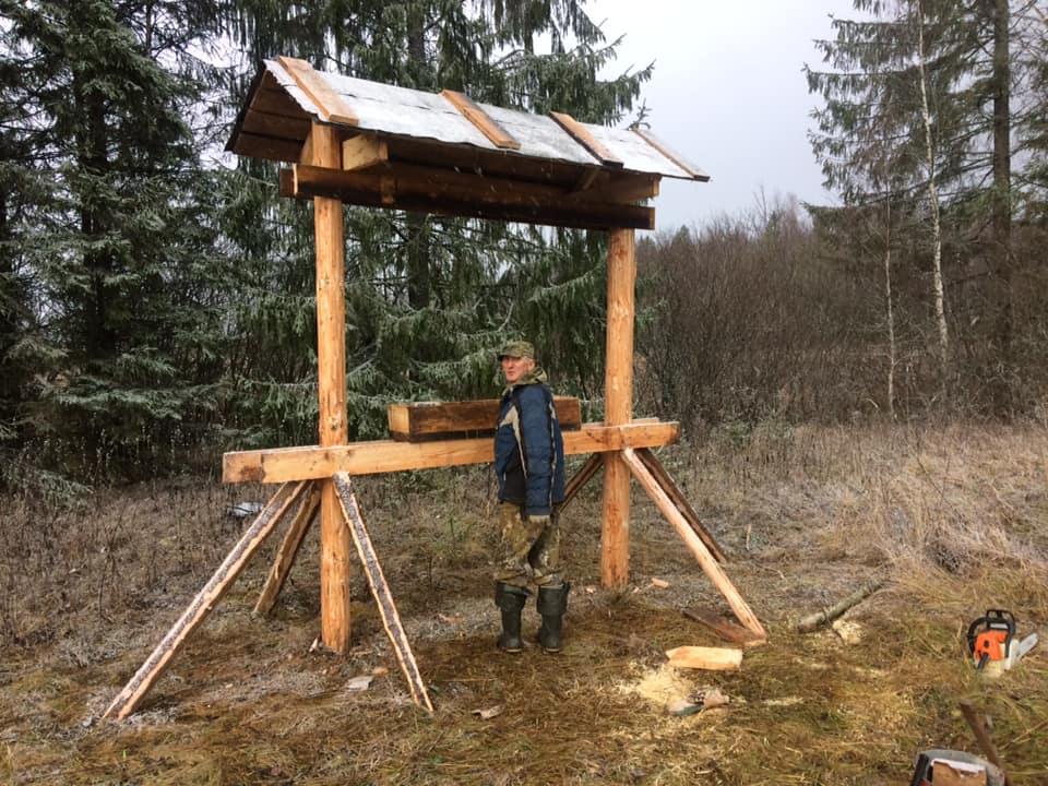 Дезинфекция подкормочной площадки для кабанов