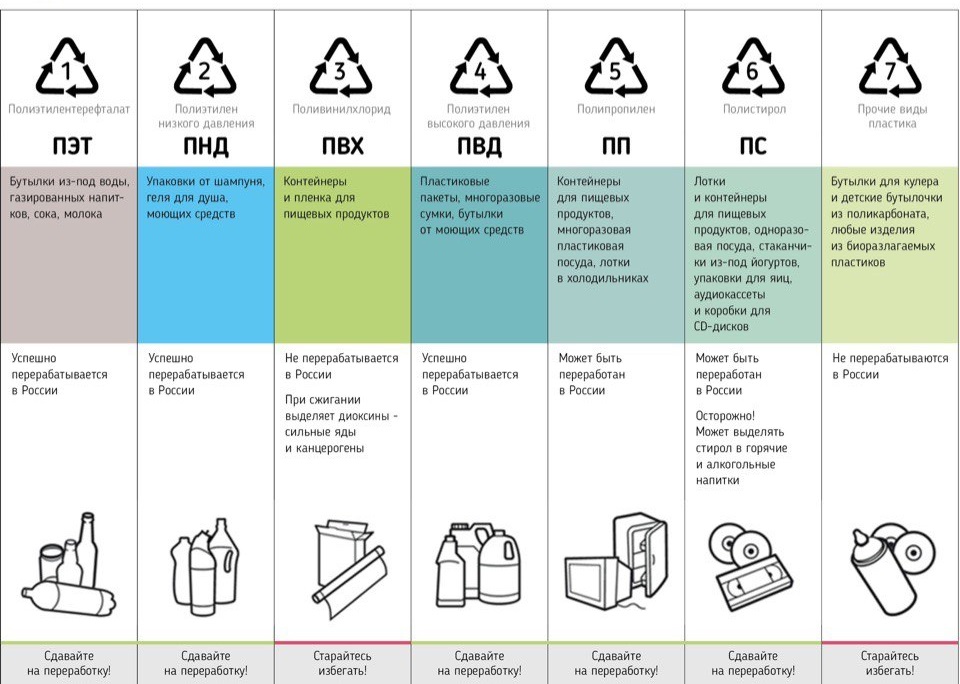 Самые популярные виды пластика, которые принимают большинство переработчиков –