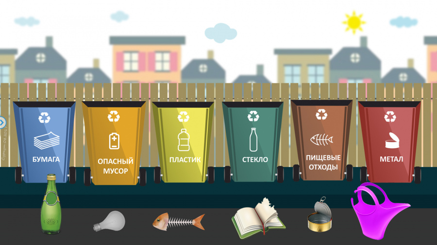 о необходимости переработки мусора. Про цветные бачки для разных видов отходов