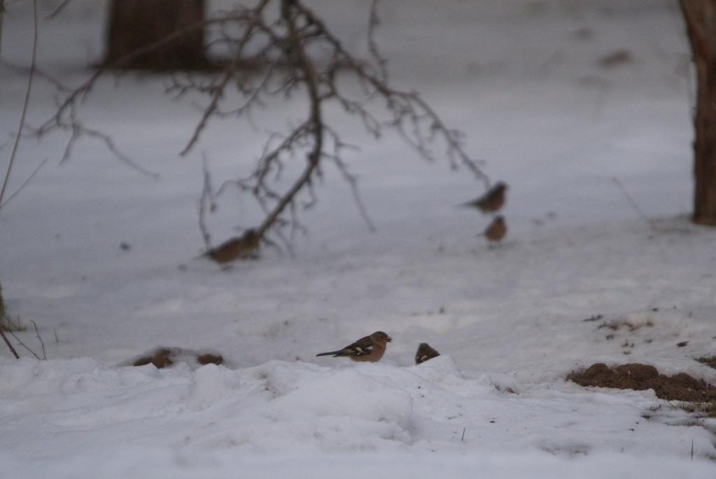 жители поселка Заповедный регулярно наблюдают стайки зябликов численностью до