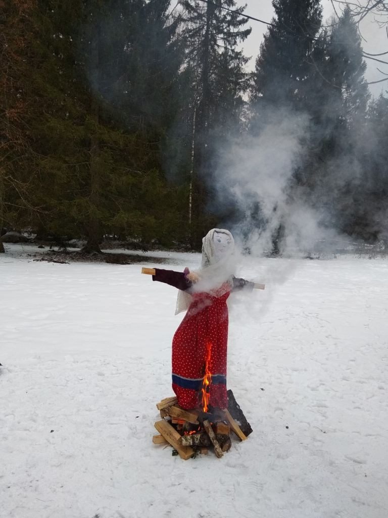 А после сожжения чучела Зимы и традиционных прыжков «на здоровье» через костер, всех ждало застолье с блинами, баранками, сгущенкой и всевозможными вареньями. Итак, мы зарядились на предстоящий март теплом, весельем и хорошим настроением, чего и вам желаем!