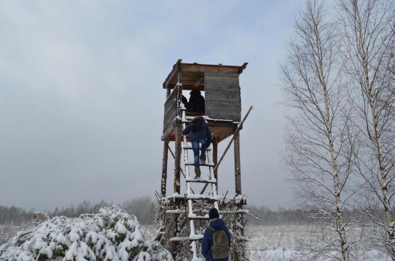 Это один из самых дальних и интересных маршрутов в охранной зоне заповедника. Он пролегает по глухим тропам, а также по местам, которые некогда были заселены, а ныне покинуты людьми. Основными объектами осмотра являются следы зверей, оставленные на лесных дорогах. На грязи хорошо видны отпечатки лап медведя, енотовидной собаки, барсука, копыт кабана и лося. На снегу обычны следы белки, лесной куницы, лисицы, зайца-беляка, волка, копытных и других. Заброшенные фруктовые сады деревень Хмелевка и Жердовка регулярно посещают дикие животные, чтобы полакомиться яблоками.