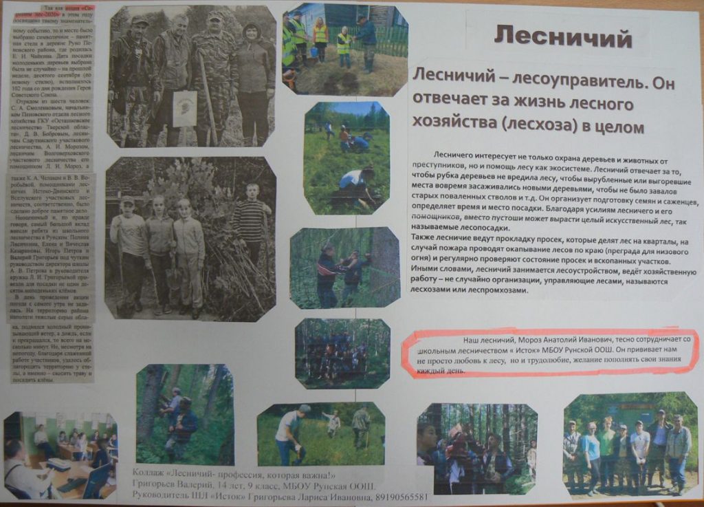 3 место – «Лесничий – профессия», которая важна!, Григорьев Валерий, 14 лет, 9 класс, МБОУ Рунская ООШ.