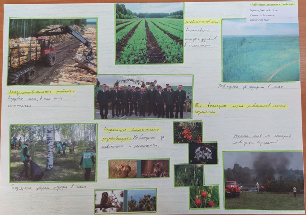 2 место – «Работник лесного хозяйства», Фролов Дмитрий,5 Б класс, 11 лет, МБОУ СШ №45 Тверь