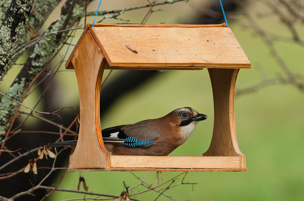 Сойка отличается от других птиц не только характерной окраской оперения, но и своим чудным характером. Это очень крикливая и любопытная птица. Она с одинаковым аппетитом употребляет как растительную, так и пищу животного происхождения. Яркой особенностью также является и крик сойки. Услышав раз, уже невозможно его спутать с голосами других птиц. Обычно сойка обитает в лесу, тем не менее сейчас (в зимний период) она не боится кормится рядом с человеком.