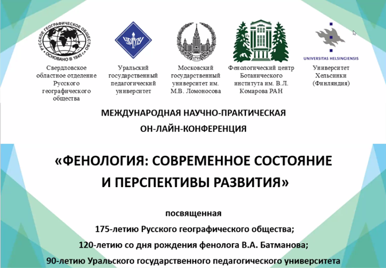 По видеосвязи было приятно увидеть и услышать своих давних коллег фенологов из Уральского педагогического госуниверситета (Маргариту Константиновну Куприянову, Оксану Янцер, Юлию Иванову); Института географии РАН (Александра Минина); Фенологического центра Ботанического института им. В.Л. Комарова РАН (Виолетту Георгиевну Федотову, Павла Лебедева); многих сотрудников из заповедников и национальных парков, а также познакомиться с интересными специалистами.
