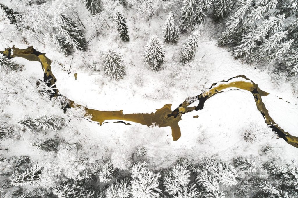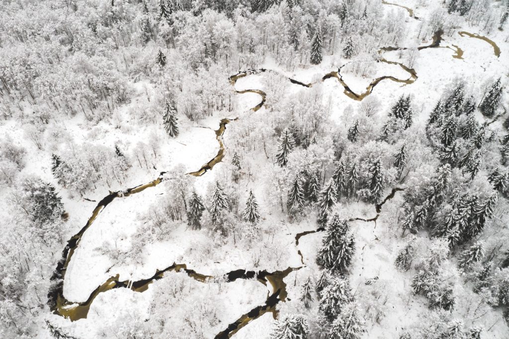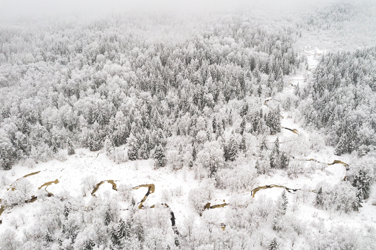 Что за "грязная" черно-коричневая вода течет по заповеднику среди чистейшего белого снега? Может быть внезапно открылось нефтяное месторождение или вдруг построили завод?