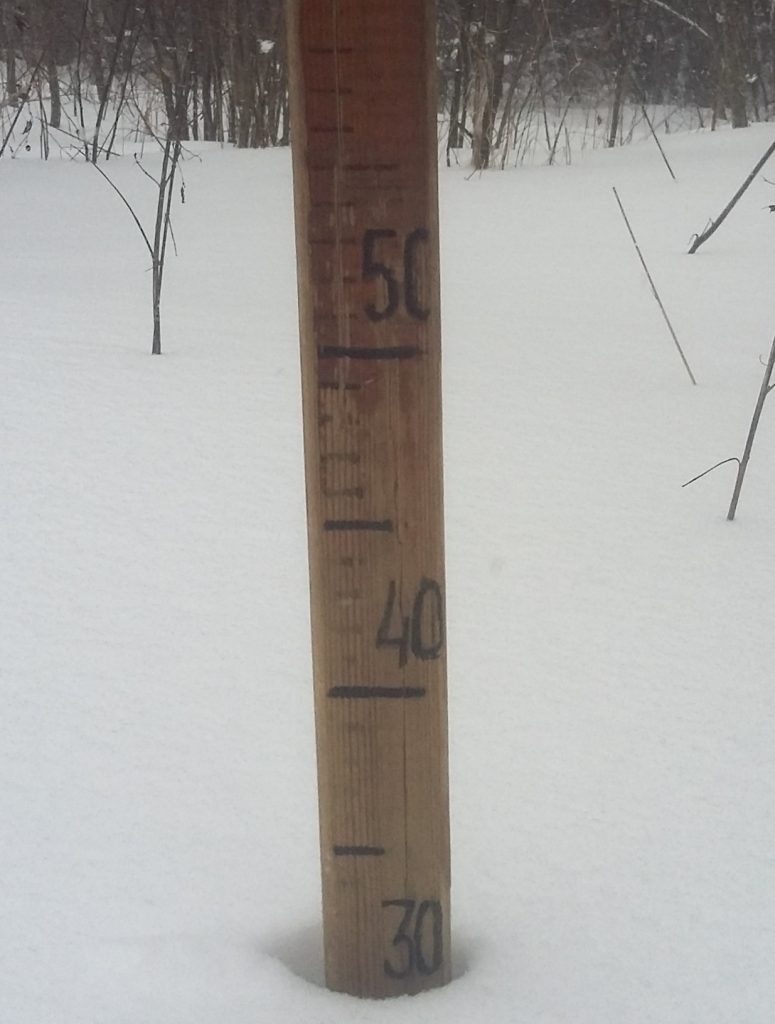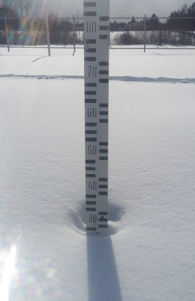 На первой фотографии показана высота снежного покрова по снегомерной рейке на метеостанции «Лесной заповедник».