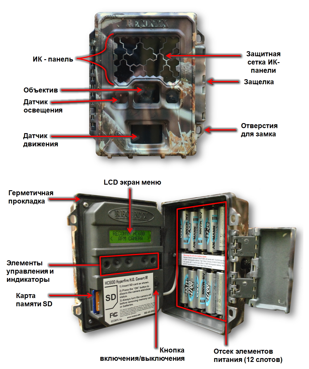 В двух словах, фотоловушка – это специально сконструированный прибор, включающий в себя фотоаппарат в защищенном герметичном корпусе. Как и во многих других современных фотоаппаратах, запись изображений осуществляется на карту памяти формата SD. Питается прибор обычно от набора батареек или пальчиковых аккумуляторов в количестве от 8 до 12 шт. (в зависимости от модели). Внутри фотоловушки также находятся пассивный датчик инфракрасного излучения (PIR, passive infra-red), который позволяет улавливать «тепло в движении» (heat in motion), и инфракрасная вспышка. Благодаря этому фотоловушка может фотографировать диких животных, когда те появляются в пределах сектора датчика, в любое время дня и ночи, оставаясь при этом более-менее незаметной для них. Таким образом, фотоловушки вносят минимальное вмешательство в жизнь зверей и птиц, что делает их применение особенно актуальным в заповедниках – территориях, где запрещена любая человеческая деятельность, вредящая Дикой Природе.