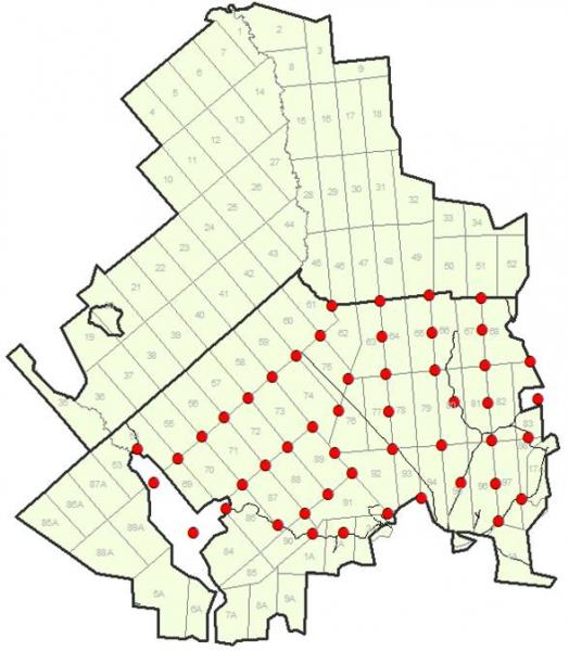 Все фотоловушки расположены на строго регламентированных местах (локациях) в Южном лесничестве заповедника. Схема их размещения подчиняется условно равномерному паттерну, что является обязательным условием для расчета некоторых показателей фотомониторинга. Среднее расстояние между локациями составляет 1.3 км, что позволяет получать адекватные оценки для всех видов млекопитающих крупнее зайца-беляка и лесной куницы включительно. Все 50 камер расставлены согласно специально разработанному «Протоколу установки фотоловушек для проведения фотомониторинга на ООПТ». Все вместе они образуют так называемую Сеть фотомониторинга, напоминающую по своей конфигурации атомную решетку (или матрицу), в узлах которой находятся фотоловушки.