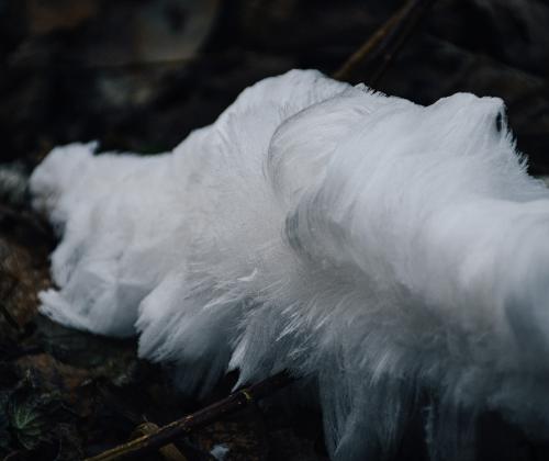 Когда температура ночью опускается чуть ниже 0°C и в заповедном лесу достаточно влажно, можно заметить редкое природное явление – «ледяные волосы», окутывающие старые ветки деревьев.