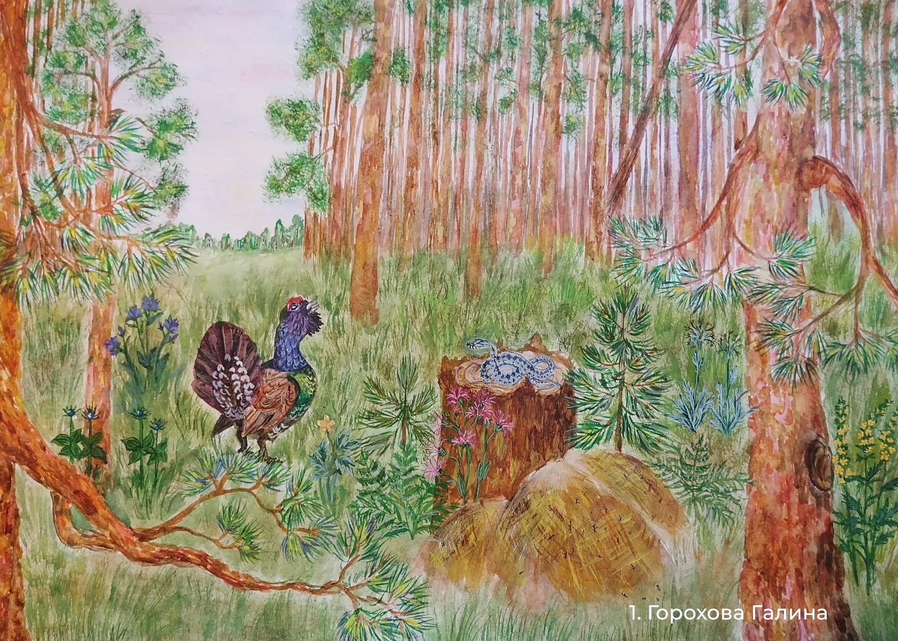 А особенно хотим поздравить Горохову Галину, давнего друга нашего заповедника. Она заняла второе место в конкурсе «Мир заповедной природы», в средней возрастной группе с рисунком «Прикоснись к тайне».