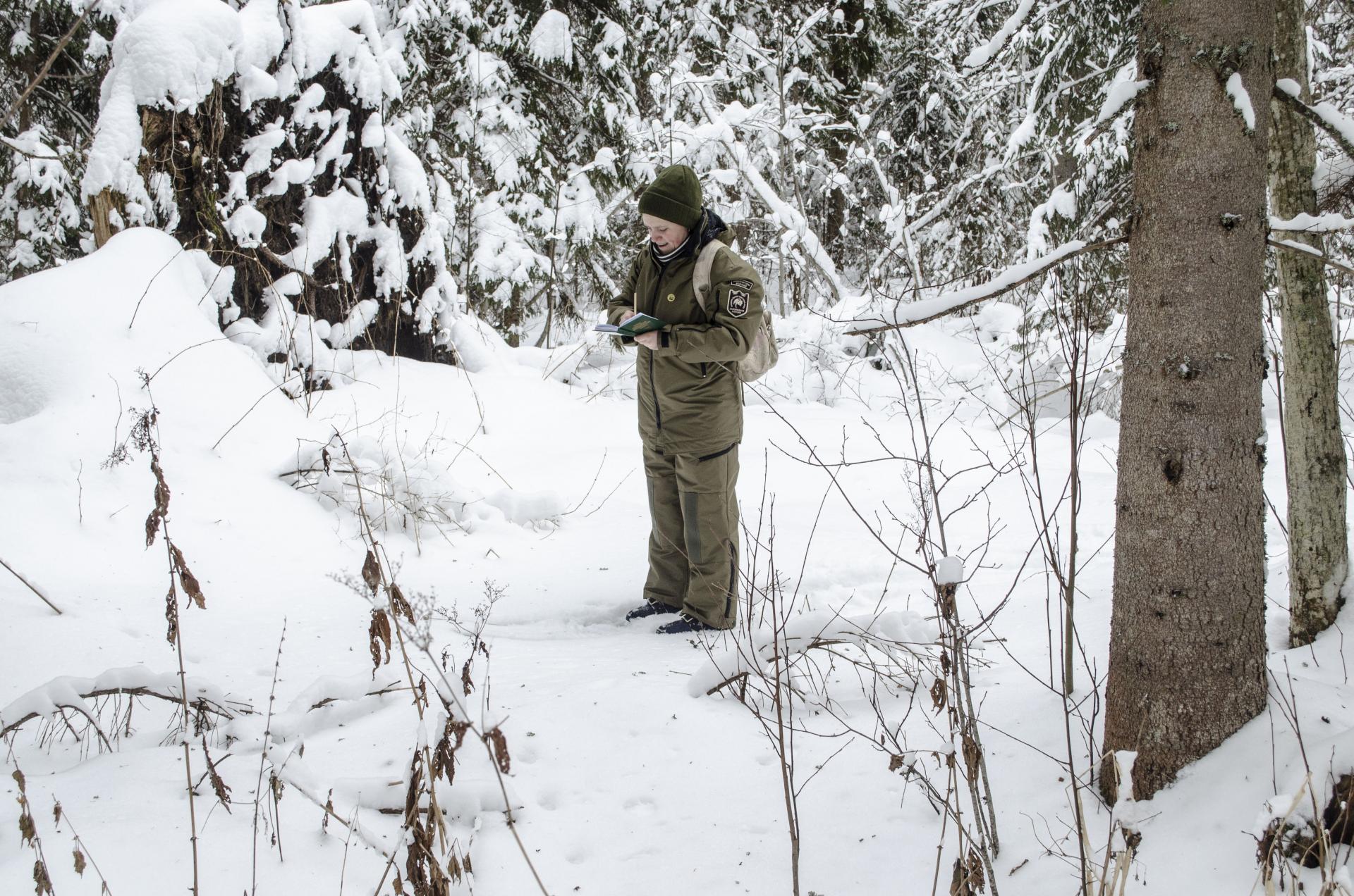 Погодные условия сегодня благоприятны для проведения ЗМУ: температура воздуха -4,5°С, ветер юго-западный, глубина снежного покрова на открытых местах 26 см, в лесу – 30 см.