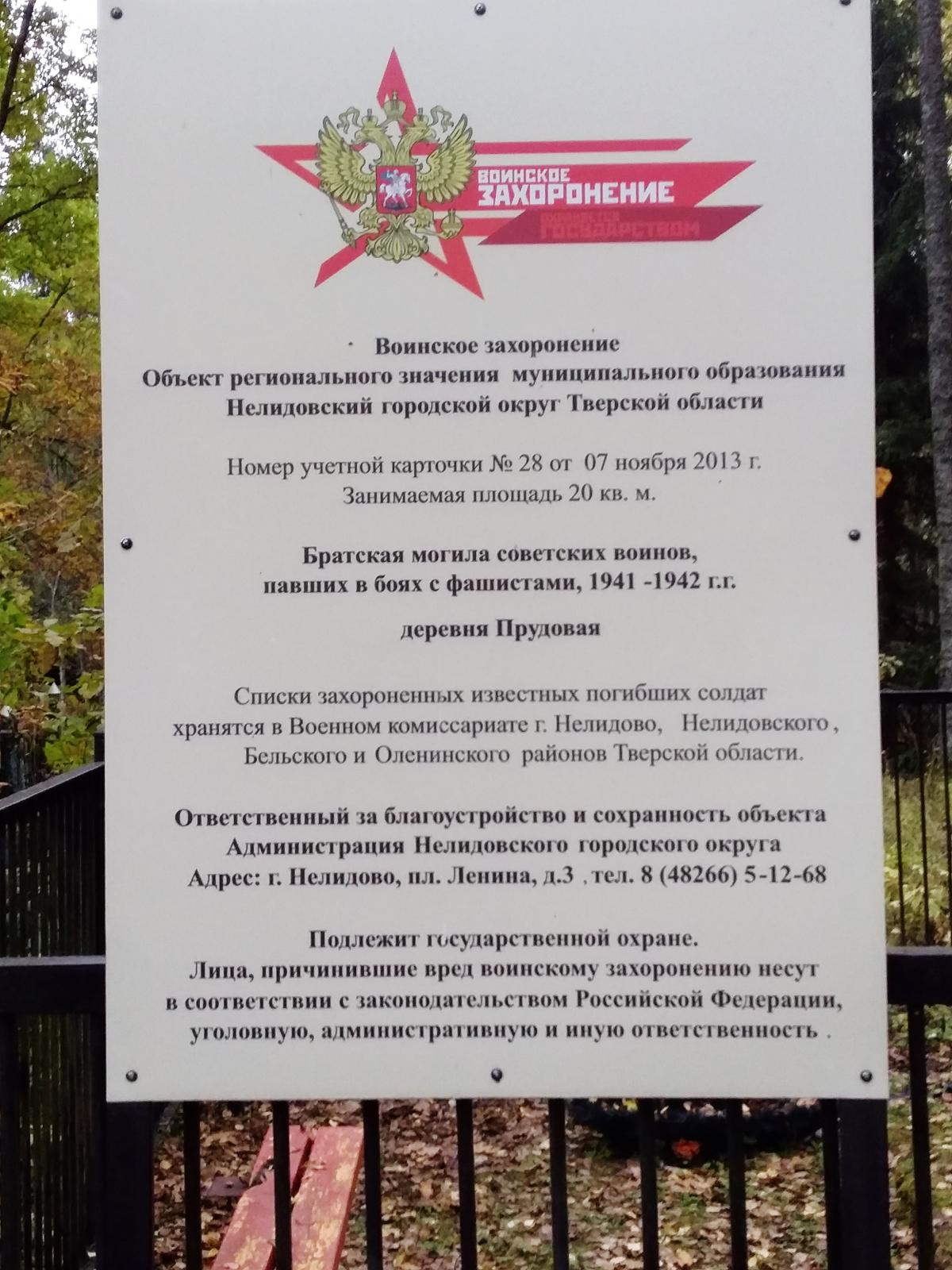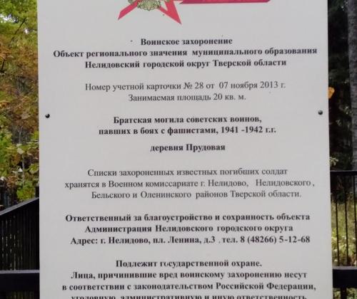 В 2022 г. в Прудовой сохранились развалины нескольких домов, одичавшие яблони и братская могила советских воинов, павших в боях с фашистами в 1941-1942 гг. Рядом с братской могилой на кладбище есть захоронения, датируемые 1993 годом. На кладбище растет несколько старых берез, одна из которых диаметром 70 см. А по дороге к Прудовой справа стоят старые дубы – хранители людской истории, самый раскидистый диаметром 98 см.