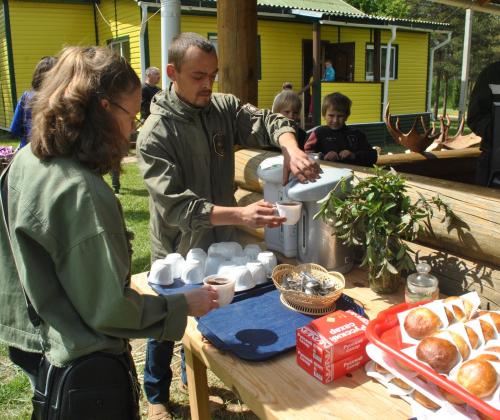 Все уставшие и довольные гости смогли отдохнуть под звуки бардовских песен в беседке, где на полевой кухне можно было отведать вкуснейшую кашу, домашние булочки и лесной травяной чай.