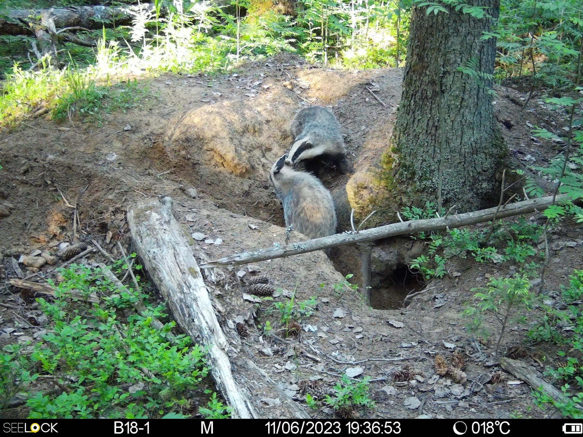 Благодаря совместной работе научного отдела и отдела охраны в течение мая и первой половины июня удалось описать 10 поселений и начать фотонаблюдения на 6 из них. На двух барсучьих городках мы смогли наблюдать хозяев воочию, в том числе барсучат этого года – так мы убедились, что здесь детеныши уже достаточно подросли, чтобы выходить на поверхность.
