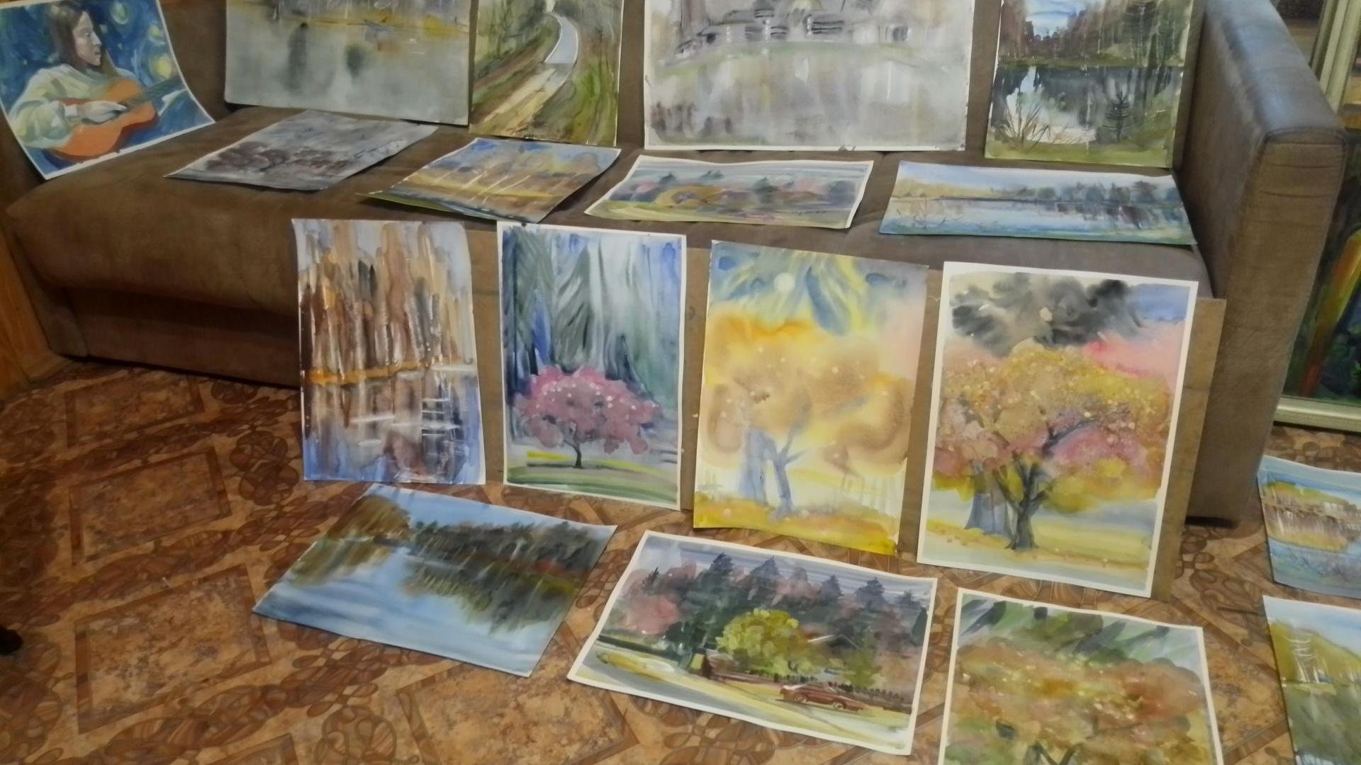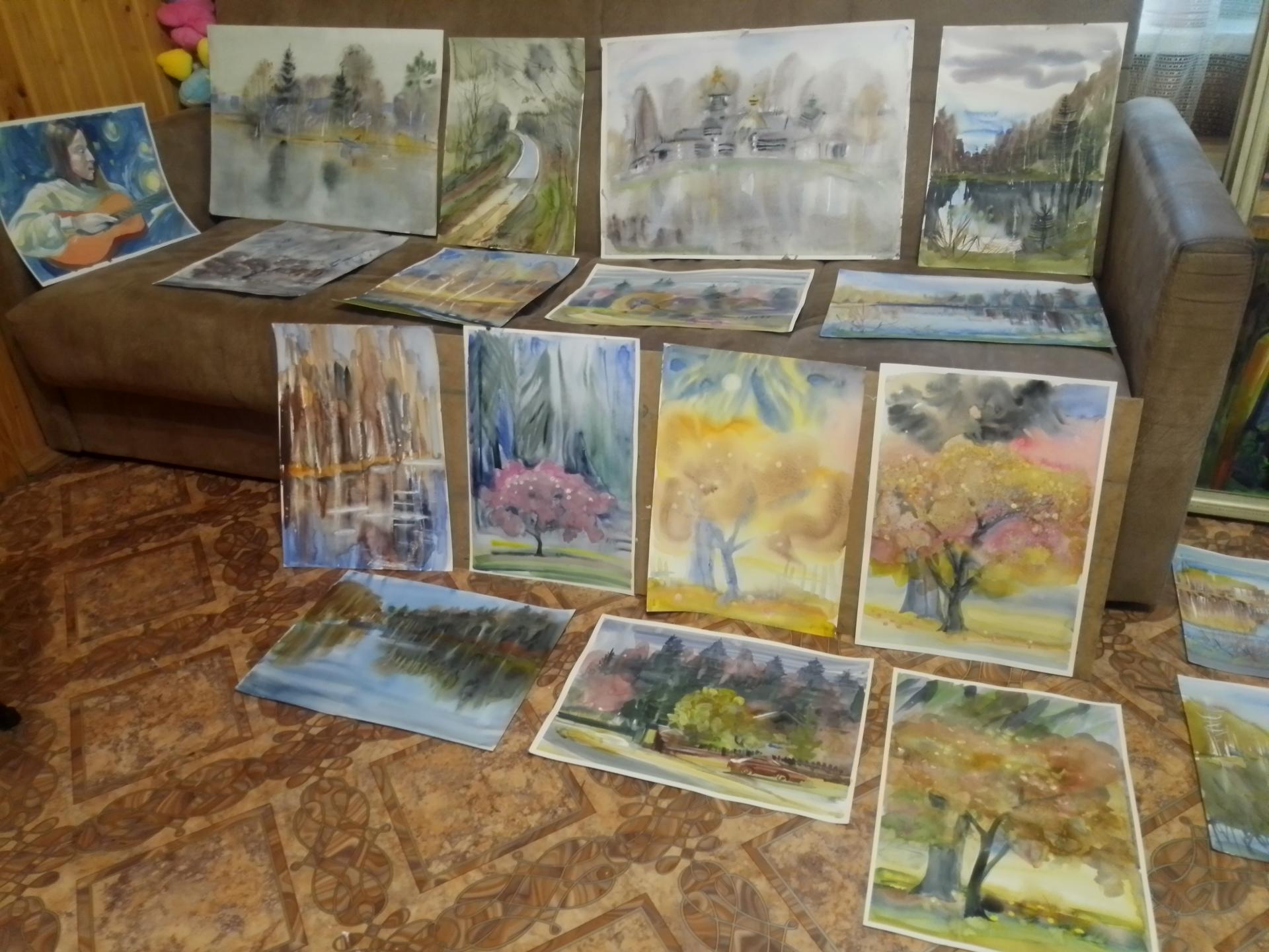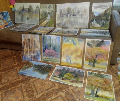 Река Межа, урочище Угольчик, закат, опустевший яблочных сад, беседка под лиственницей, церковь Александра Свирского, вид из окна и многие природные мотивы запечатлены в работах, представленных на нашей странице.
