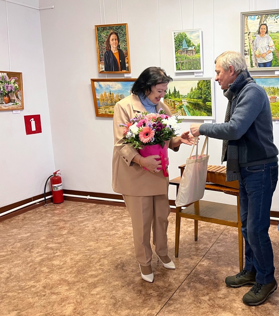 Научные сотрудники заповедника Павел Кораблёв и Виталий Кочетков тепло поздравили Людмилу с юбилеем, рассказав о знакомстве и дружбе с художником. Людмила была очень благодарна Павлу Николаевичу Кораблёву, что он привез на выставку, подаренную