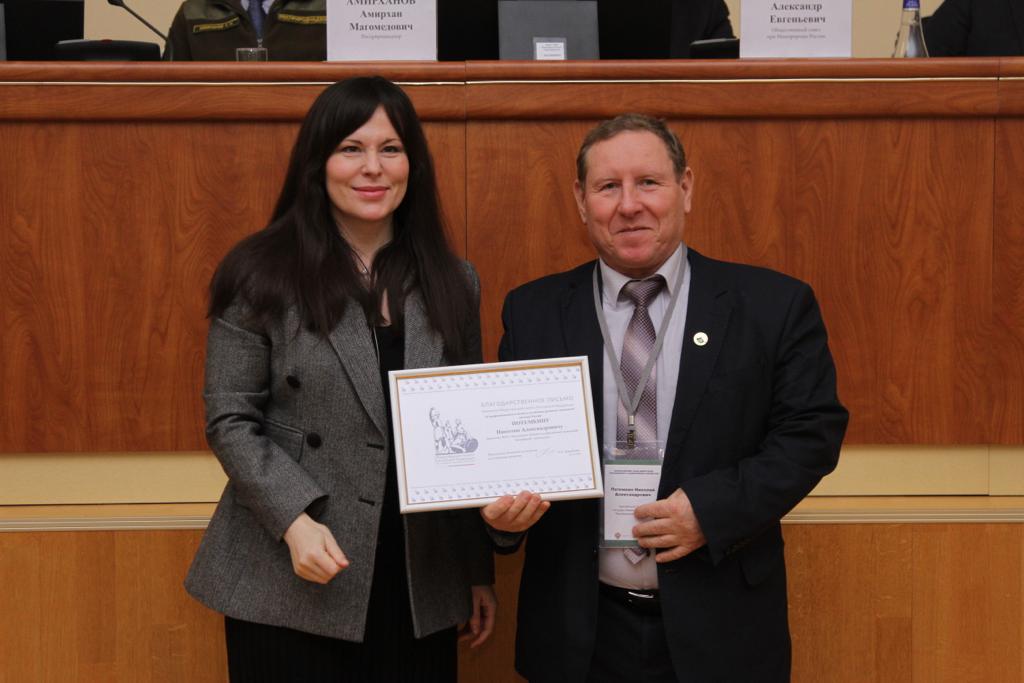 вручила Николаю Александровичу Благодарственное письмо за профессионализм и вклад