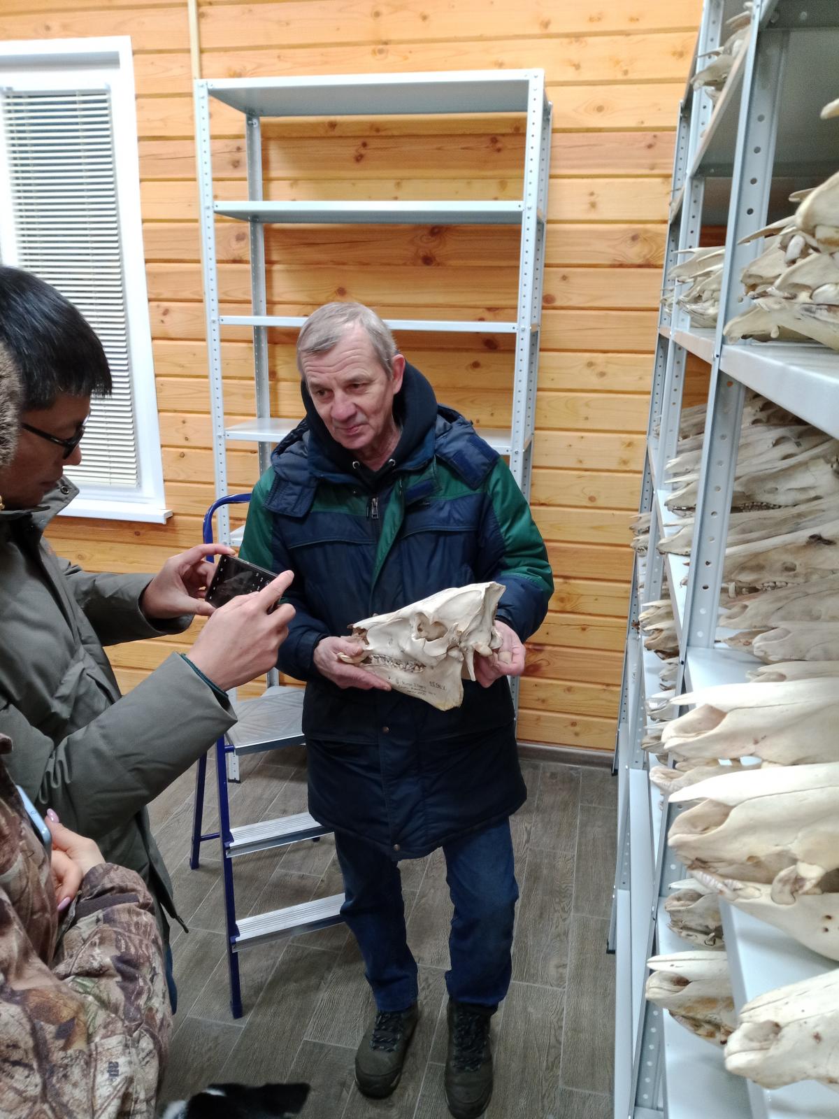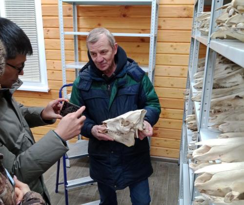 Помимо этого, Шибин Чжу и Анна Ячменникова посетили Музей Природы и визит-центр, библиотеку заповедника и недавно открывшийся Биоресурсный центр коллективного пользования (краниологический центр). Стоит отметить, что Шибин и Анна были первым официальными посетителями этого центра. Его руководитель в.н.с. Павел Николаевич Кораблев не только продемонстрировал богатые краниологические коллекции, но и пригласил китайских коллег для их совместного изучения. Шибин был сильно впечатлен уровнем развития исследований черепов и скелетов млекопитающих в заповеднике и отметил, что многие его коллеги с радостью примут такое приглашение.
