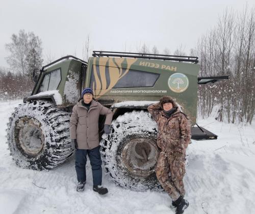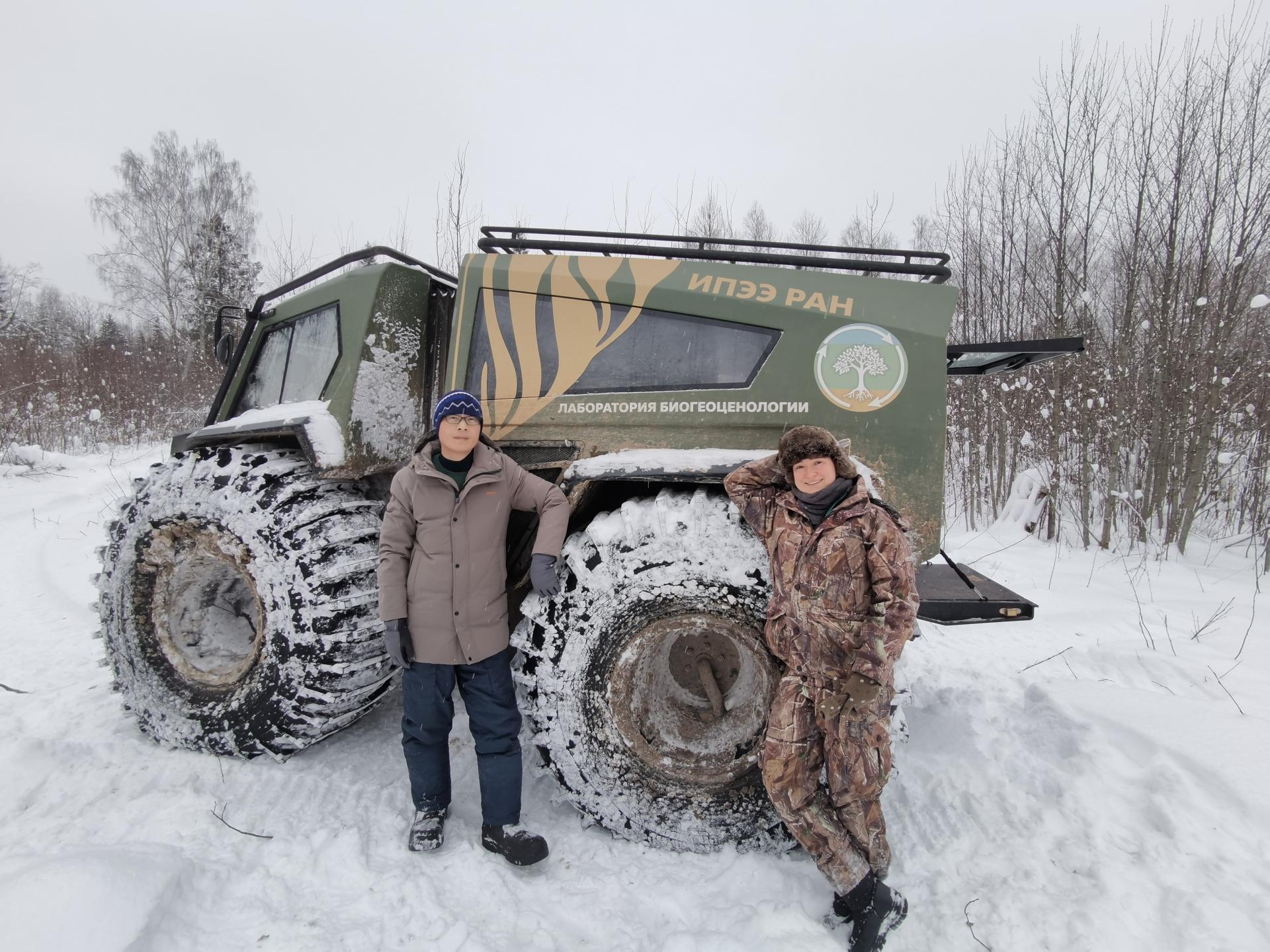 Второй главной задачей его приезда было ознакомление с эколого-климатическими станциями ИПЭЭ РАН по мониторингу эмиссии парниковых газов. С помощью внедорожной спецтехники мы посетили две таких станции и познакомились с работой оборудования, установленного на них. Китайские коллеги очень заинтересованы в развитии карбоновых полигонов на своей территории, поэтому с радостью перенимают успешный российский опыт.