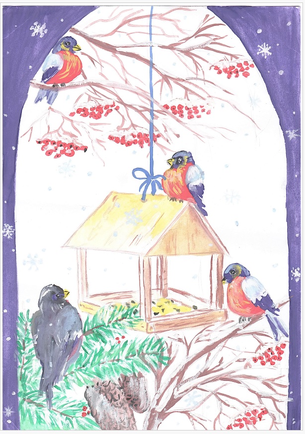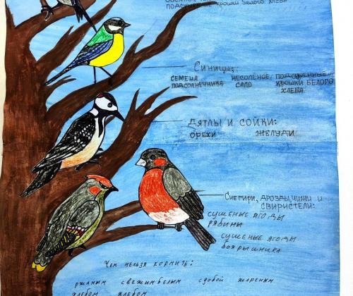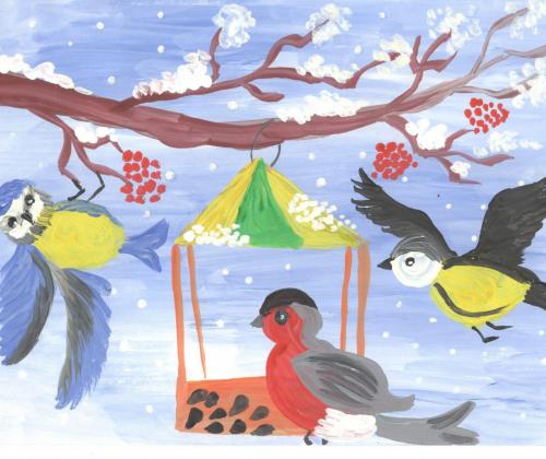 - Мария Кириллова 13 лет, «Покормите птиц зимой, пусть летят к вам как домой!»