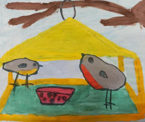 - Морозова Валерия 6 лет, «Птички на кормушке»