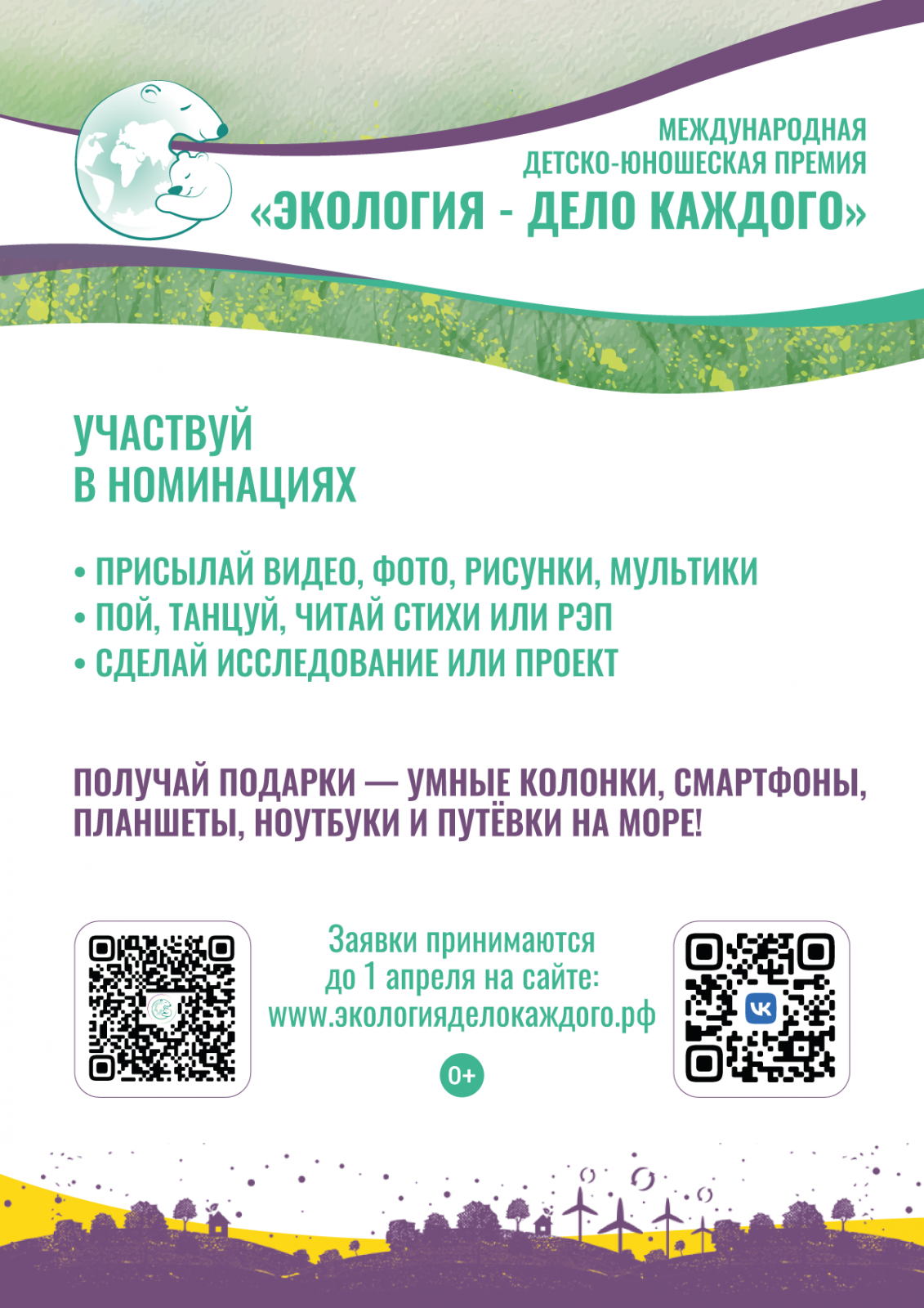 Приглашаем желающих принять участие в Международной детско-юношеской премии "Экология - дело каждого".