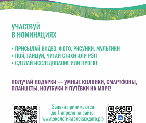 инициативы и проекты, посвященные сохранению окружающей среды, бережному отношению к природе и популяризации экологической культуры.