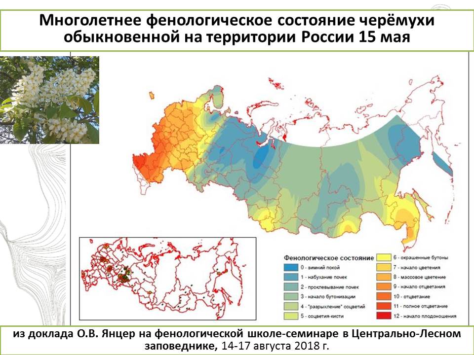 проведении Единого фенологического дня. Результаты состояния черёмухи 15 мая в
