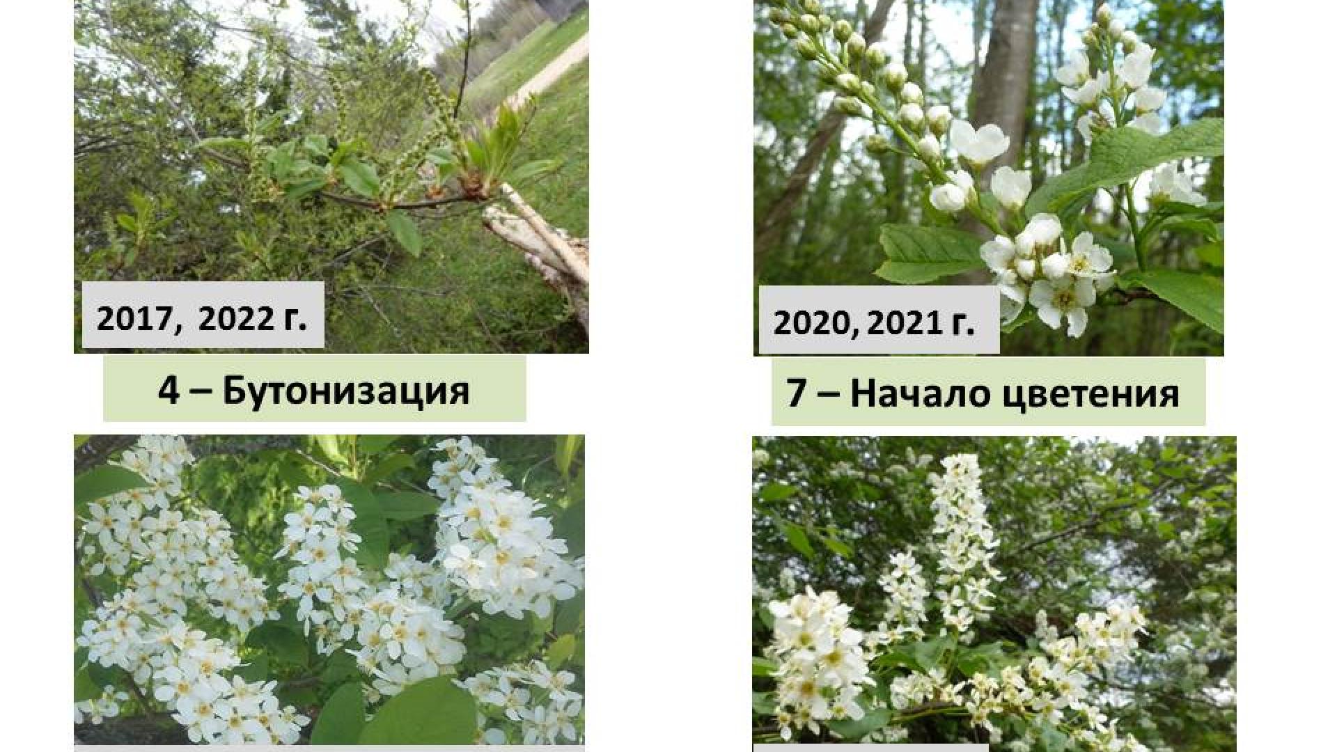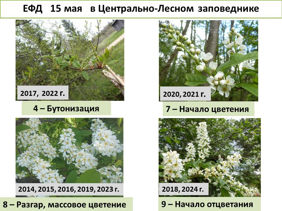 2019 и 2023 годах – массовое цветение (8 баллов); в 2018 и 2024 гг. – начало отцветания (9