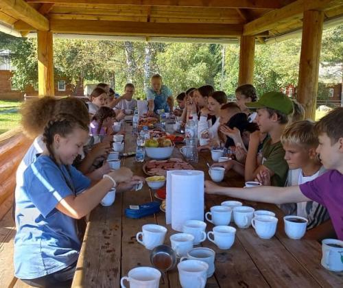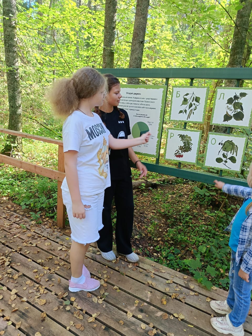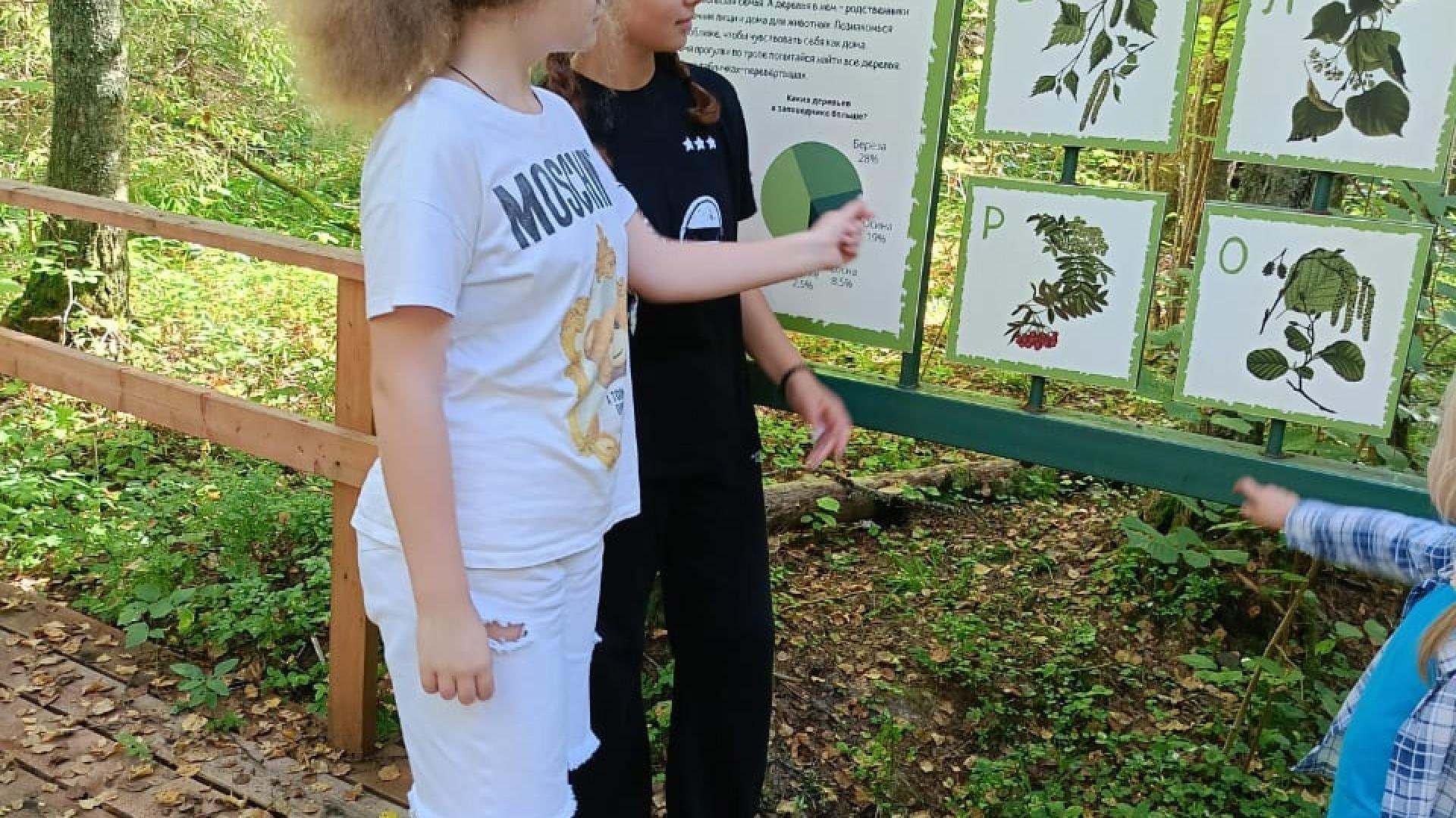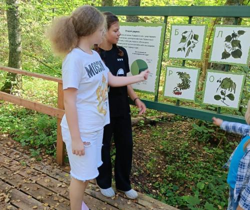 Она же сопровождала наше путешествие по экотропе. Это аккуратные деревянные настилы по лесу, болоту, над речкой, по которым удобно ходить. Повсюду указатели, стенды с описанием заповедных животных, птиц, ягод, цветов, деревьев… Здесь же лавочки, беседка прямо на озере. Интересный рассказ Елены Александровны увлёк и детей, и взрослых (взрослых – больше).