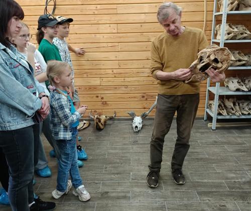Начали мы знакомство с Заповедником в краниологической лаборатории. Здесь хранится огромная (самая крупная в России среди всех заповедных) коллекция черепов разных животных, которую нам интересно и во всех подробностях представил ведущий научный сотрудник Павел Николаевич Кораблёв.