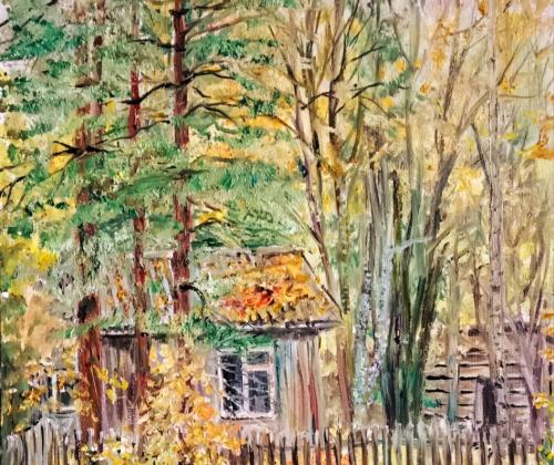 дожди), мастер написала несколько работ: этюд (сельский двор) и три