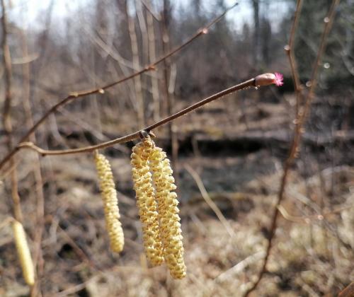 кустарники увешаны мужскими сережками. Возможно, оттепели в конце января вызвали