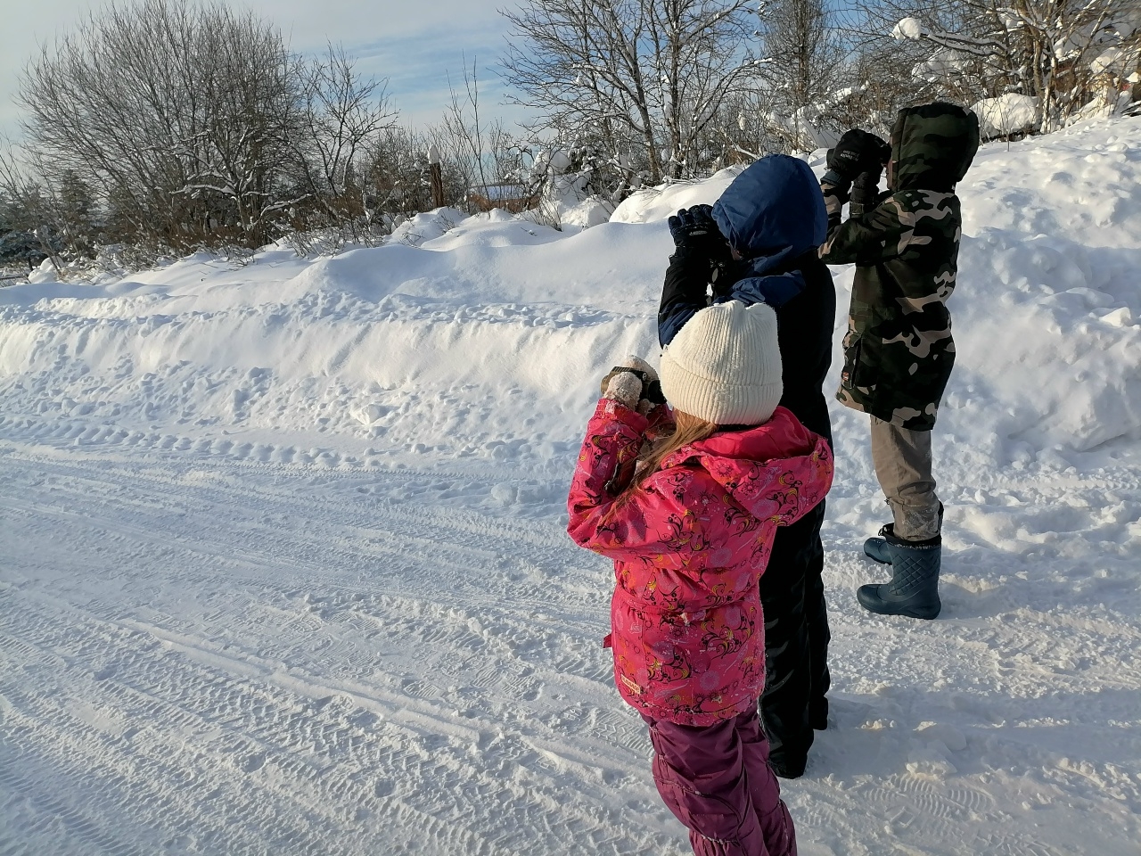 В предыдущие годы воробьи преимущественно сидели в колючих кустах крыжовника, а в этом году, из-за высокого снежного покрова (высота более 60 см), они скрывались на кустарниках сливы колючей, а также на чубушнике венечном и шиповнике колючейшем.