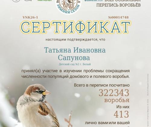 Огромное спасибо всем наблюдателям в Тверской области! Каждый из вас внёс важный вклад в науку. Все участники получили именные сертификаты. Перепись воробьёв повторится в августе, а также, надеемся, продолжится в последующие годы. Попробовать себя в роли орнитолога сможет каждый).