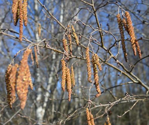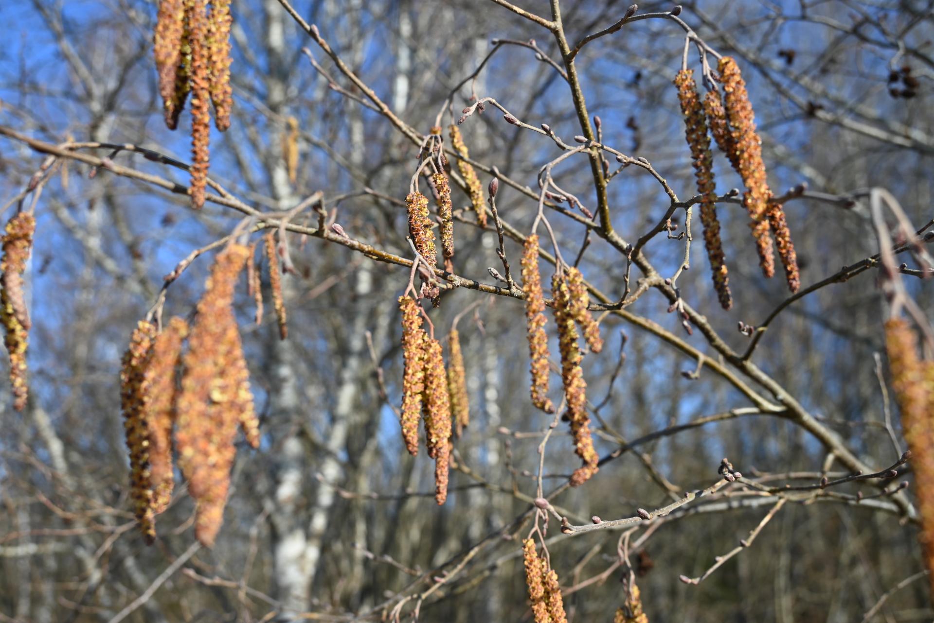 день начали цветение лещина и ольха серая, пуская по ветру жёлтые облачка пыльцы с