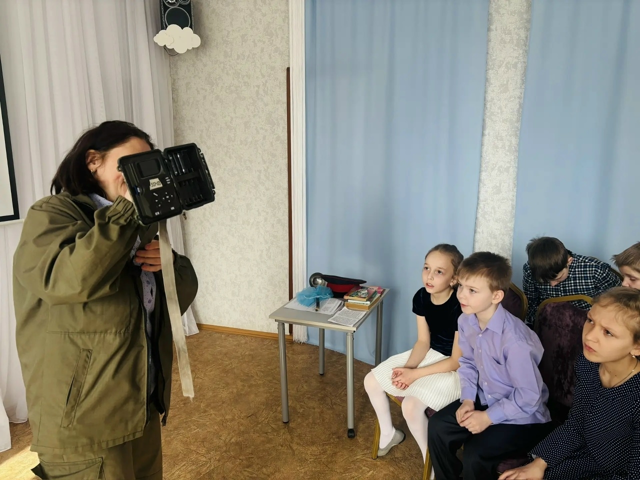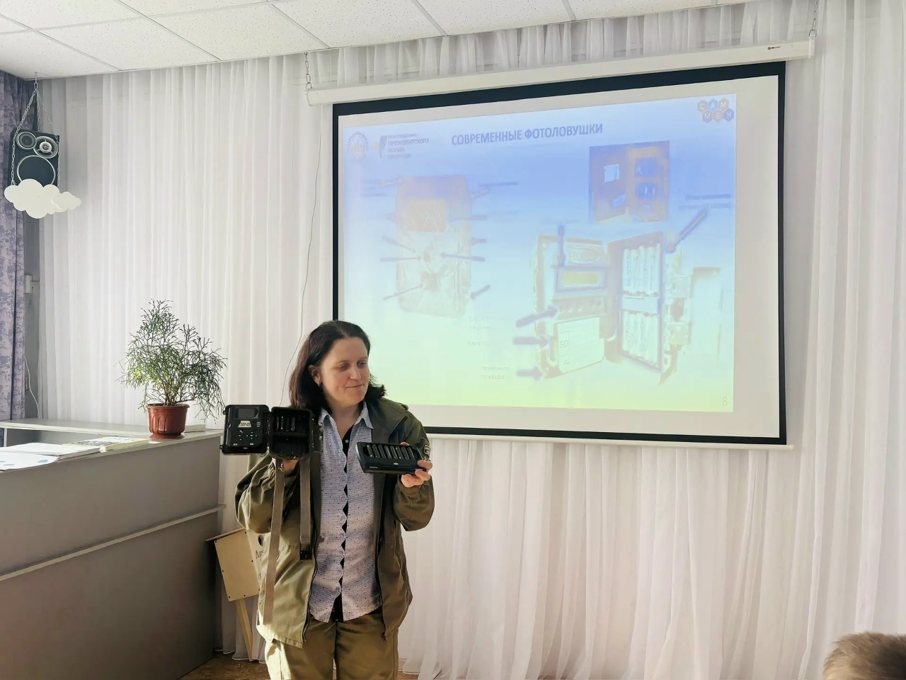 Помимо этого, воспитанники Центра посмотрели фотографии и видеосюжеты про животных, созданные при помощи фотоловушек. Елена Шуйская рассказала про проект Президентского фонда природы «Формирование национальной Сети фотомониторинга на заповедных территориях России», который осуществляется с 2025 г. при участии Центрально-Лесного заповедника на семи крупных ООПТ. Ребята увидели разные модели фотоловушек, а самые смелые попробовали привести камеры в рабочее состояние и установить их. Непростым делом оказалось прочитать нужную информацию с множества фотоснимков: тут требуются знания и опыт.