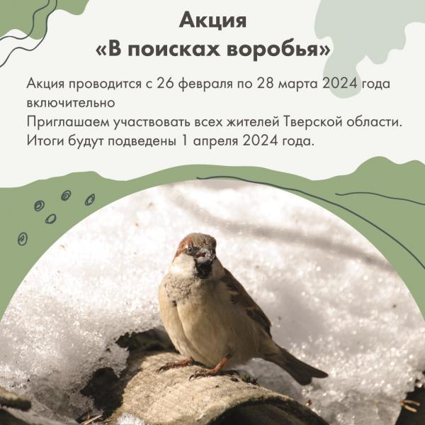 Приглашаем вас принять участие во Всероссийской переписи воробьев, которая состоится с 4 по 10 марта 2024 г.